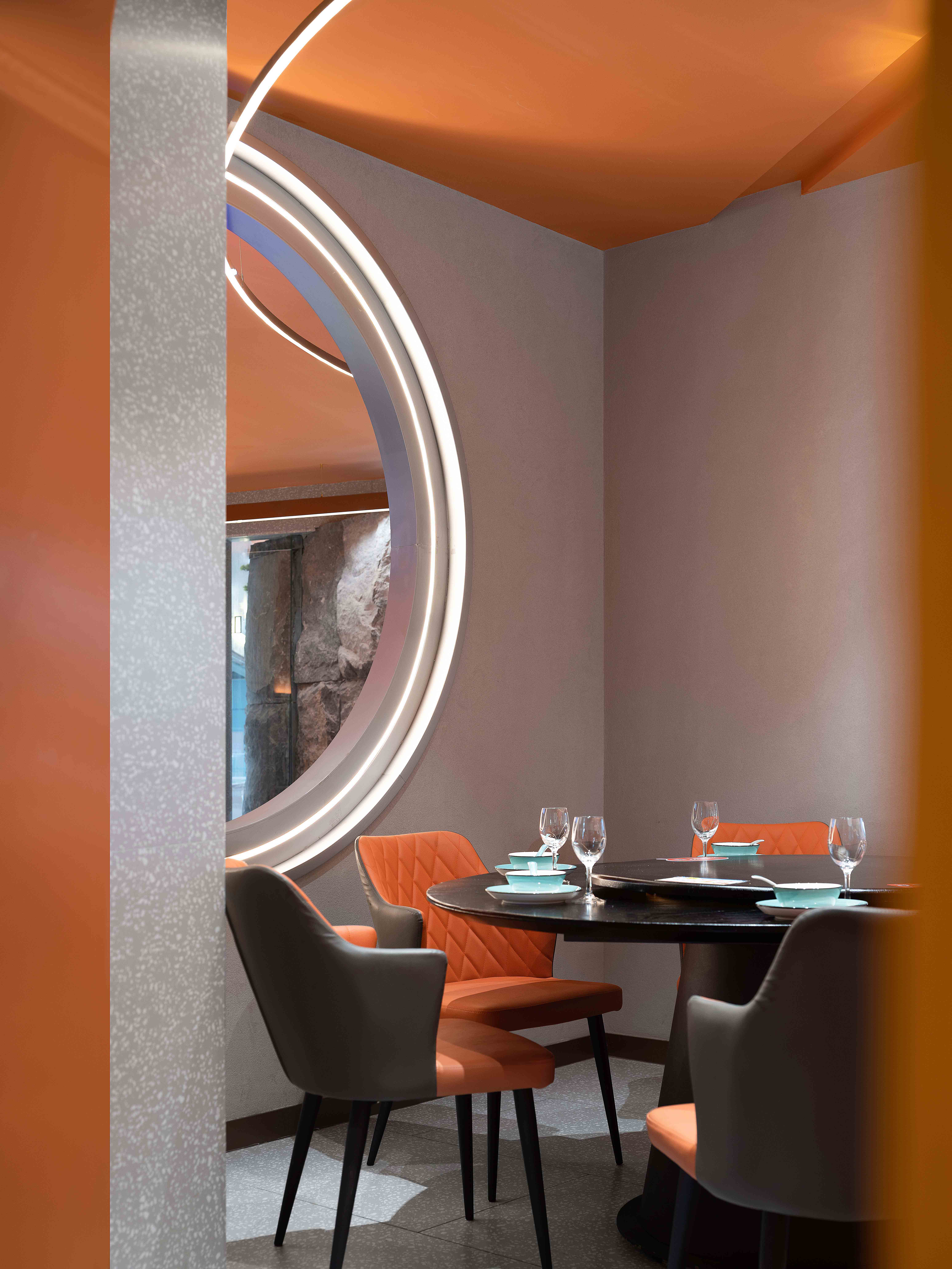 此次设计中,运用大量的漏墙及圆形景窗,通过这些不同形态的开口,使客人在游移过程中感受到通透舒适的感觉。