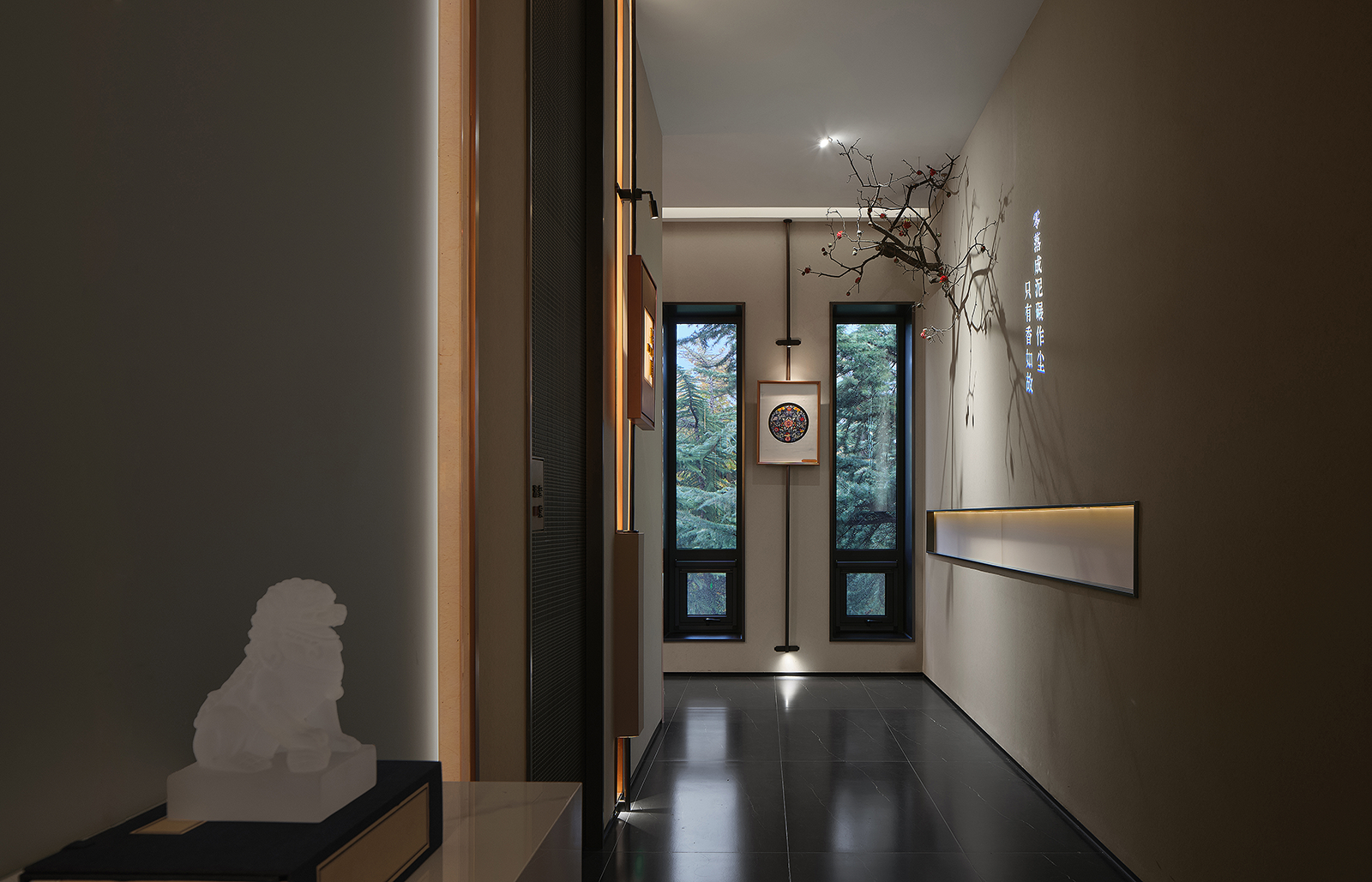 设计师以传统民居建筑“庭前”和“深巷”的空间形态来映射餐厅大堂和走廊的布局,